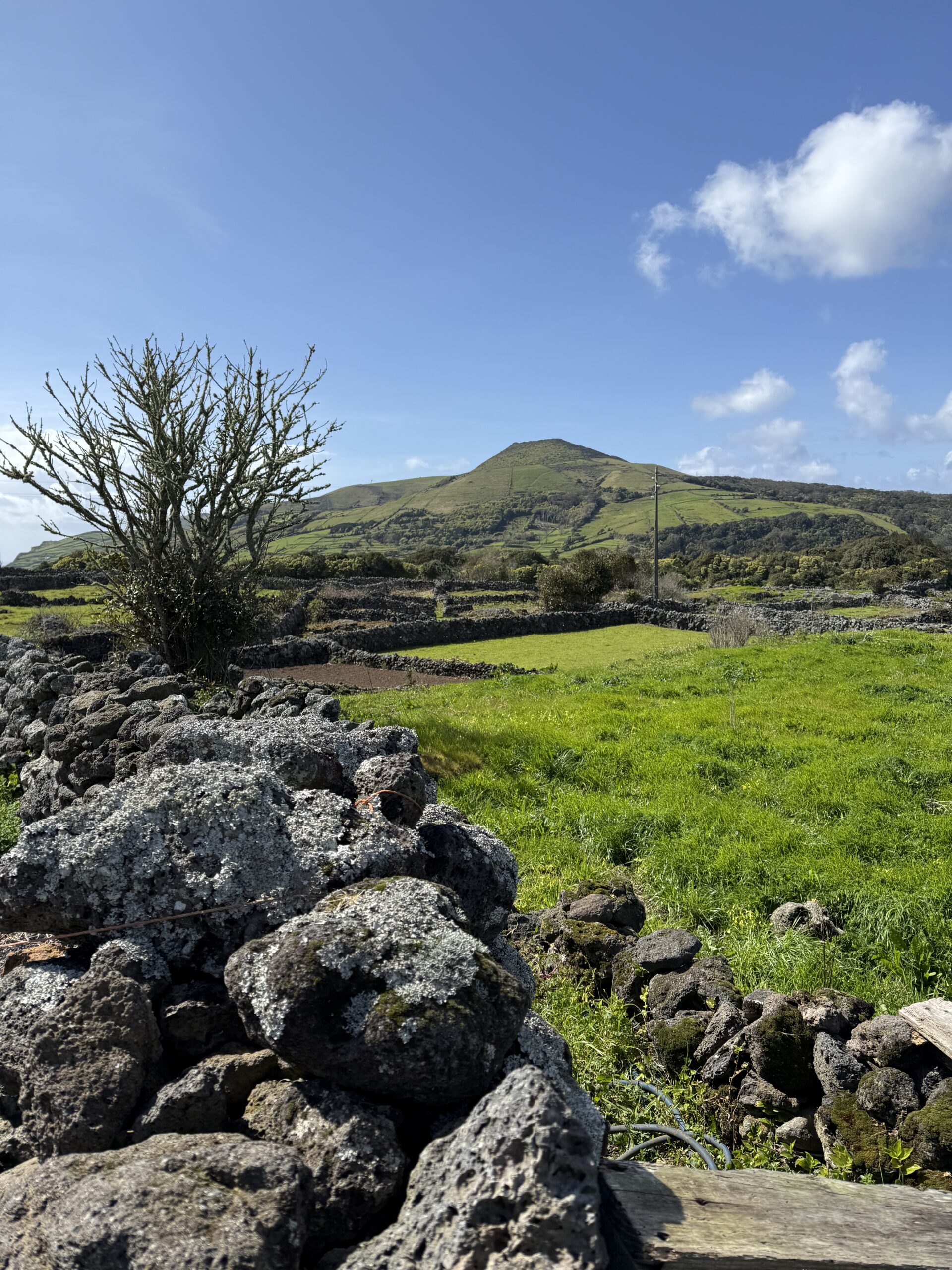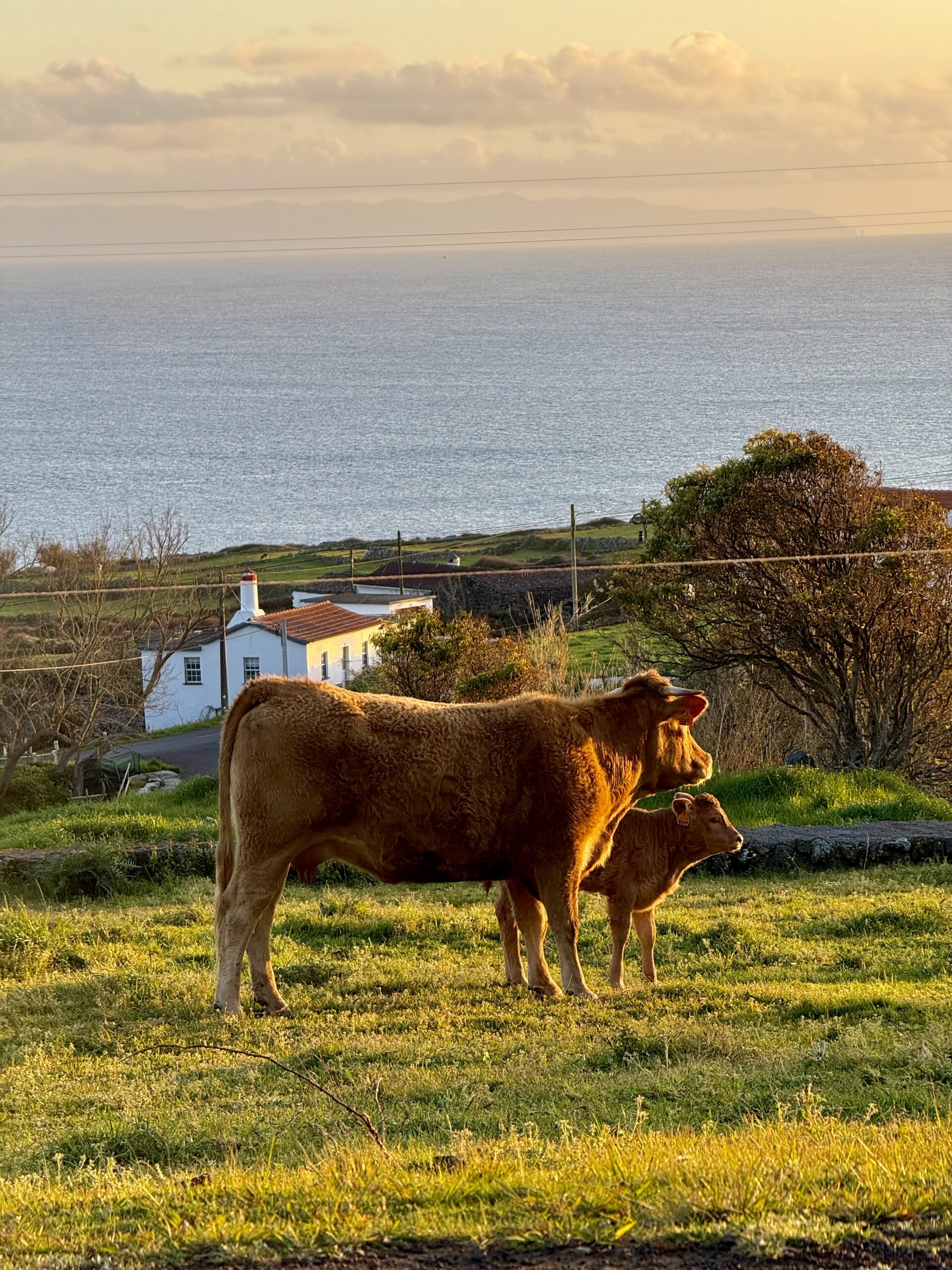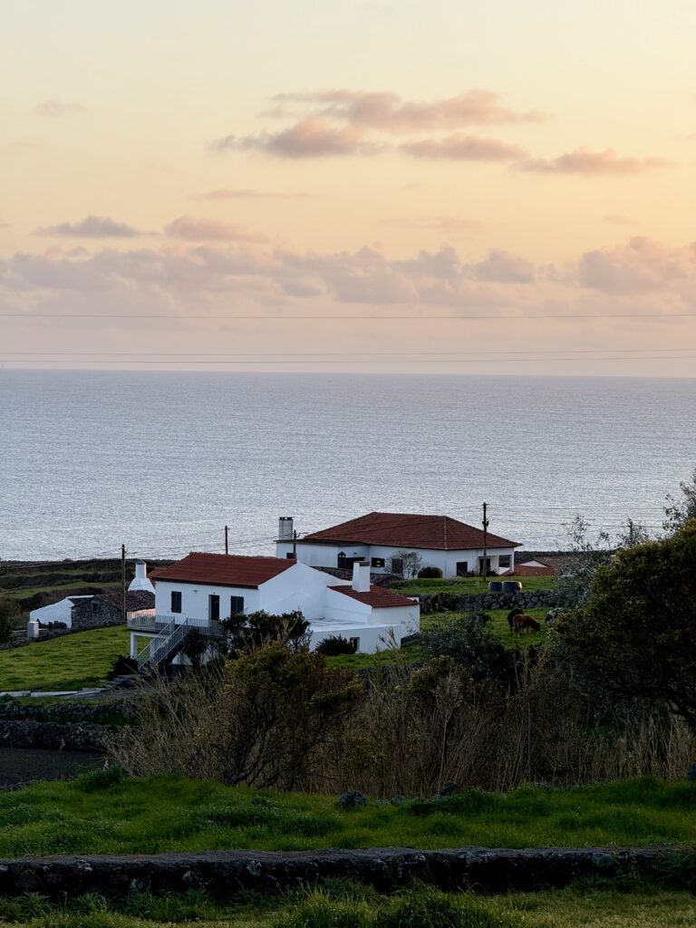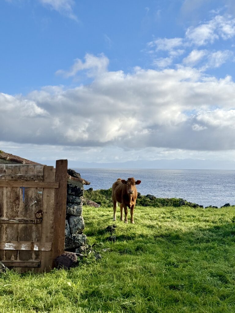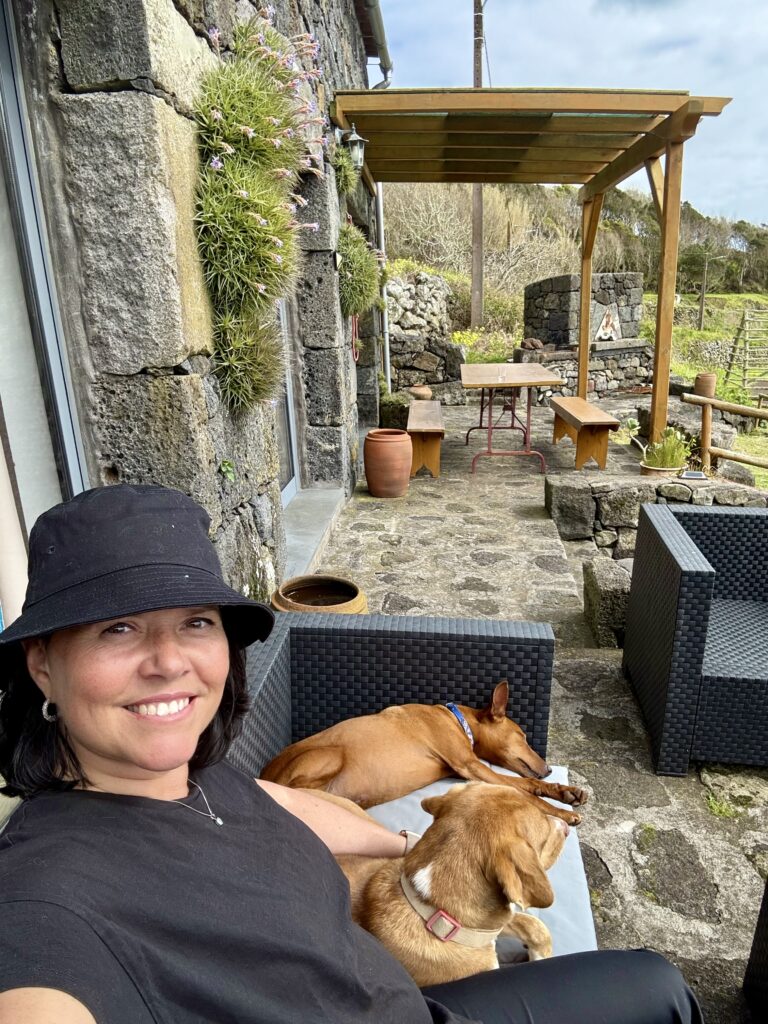 På Azorerna var det tidig vår och jag fick ett azoriskt stenhus för mig själv, med underbar utsikt över kohagar, ängar och havet och horisonten. I huset bredvid bodde min hälsocoach Stefania med familj – och deras kärleksfulla hundar, som var precis den sortens sällskap som man kan behöva när man inte är sitt gladaste jag.