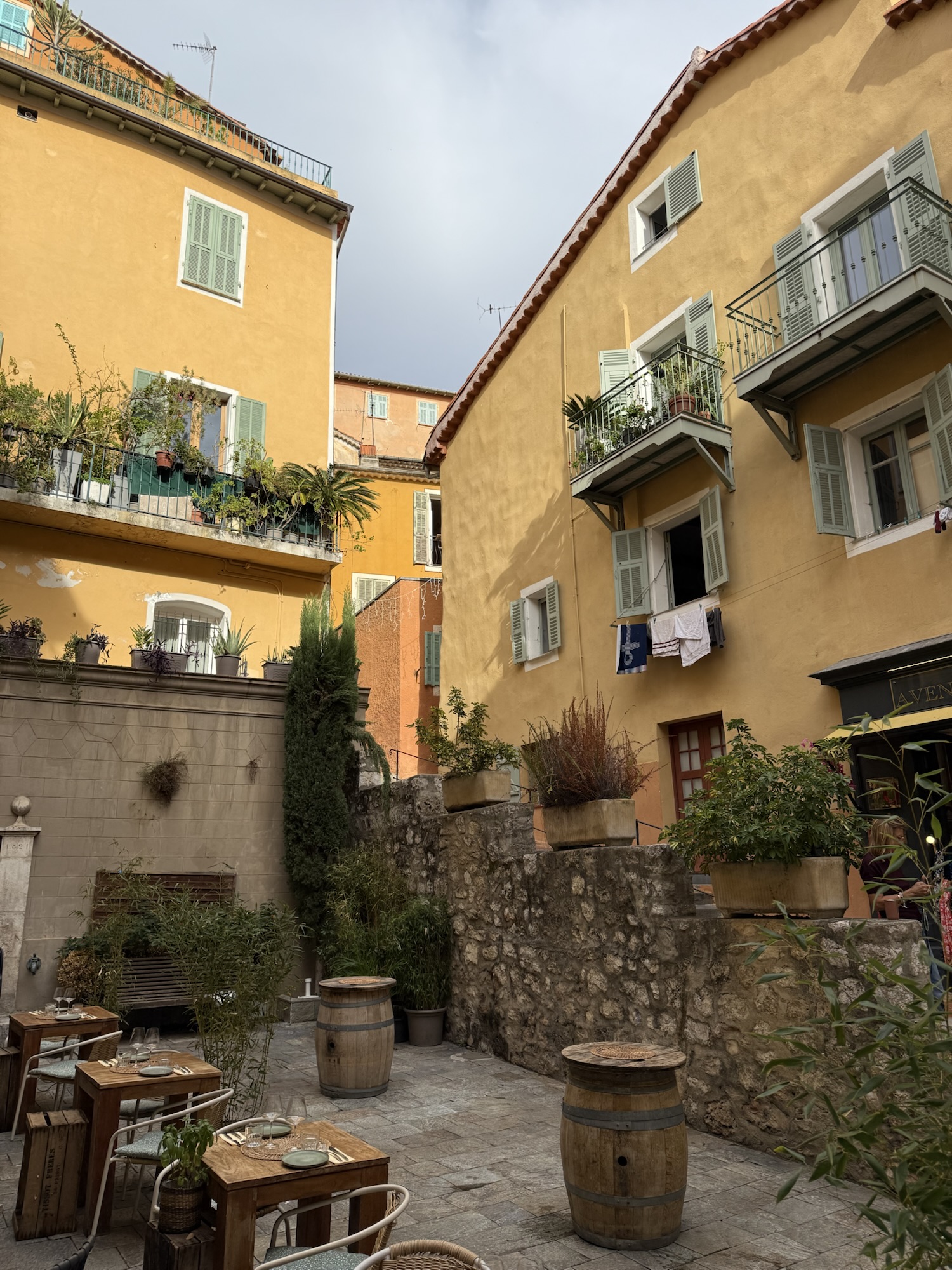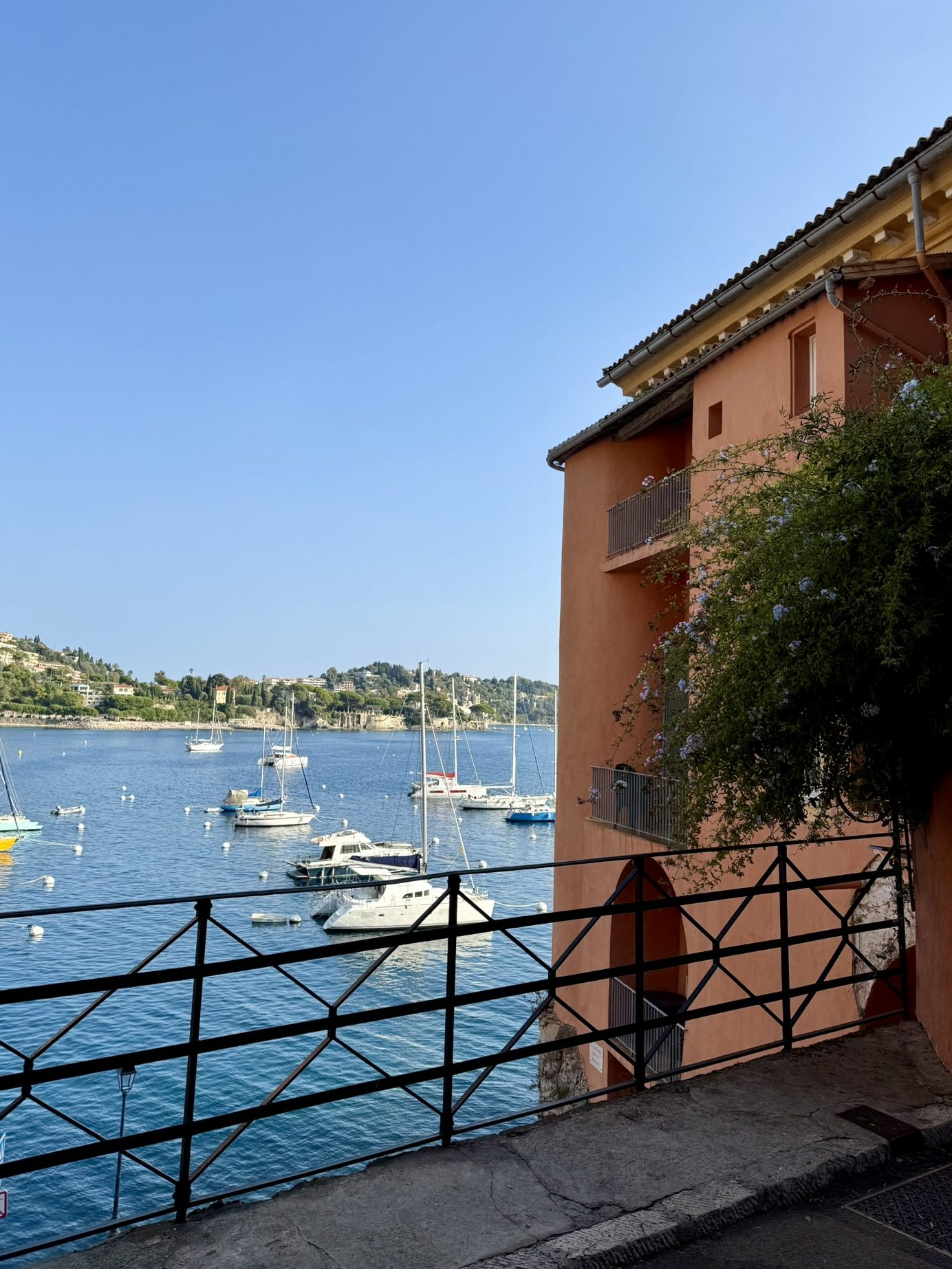 I Villefranche hittade jag snabbt ett hotell som tickade i princip alla boxar: Welcome Hotel. En vacker gammal byggnad med klassisk rivieracharm, balkonger mot havet, ljusblå fönsterluckor och ett oslagbart läge direkt vid kajkanten, som att bo mitt i ett vykort. Men, priset var över vår budget och dessutom fanns det inga lediga rum. Suck.