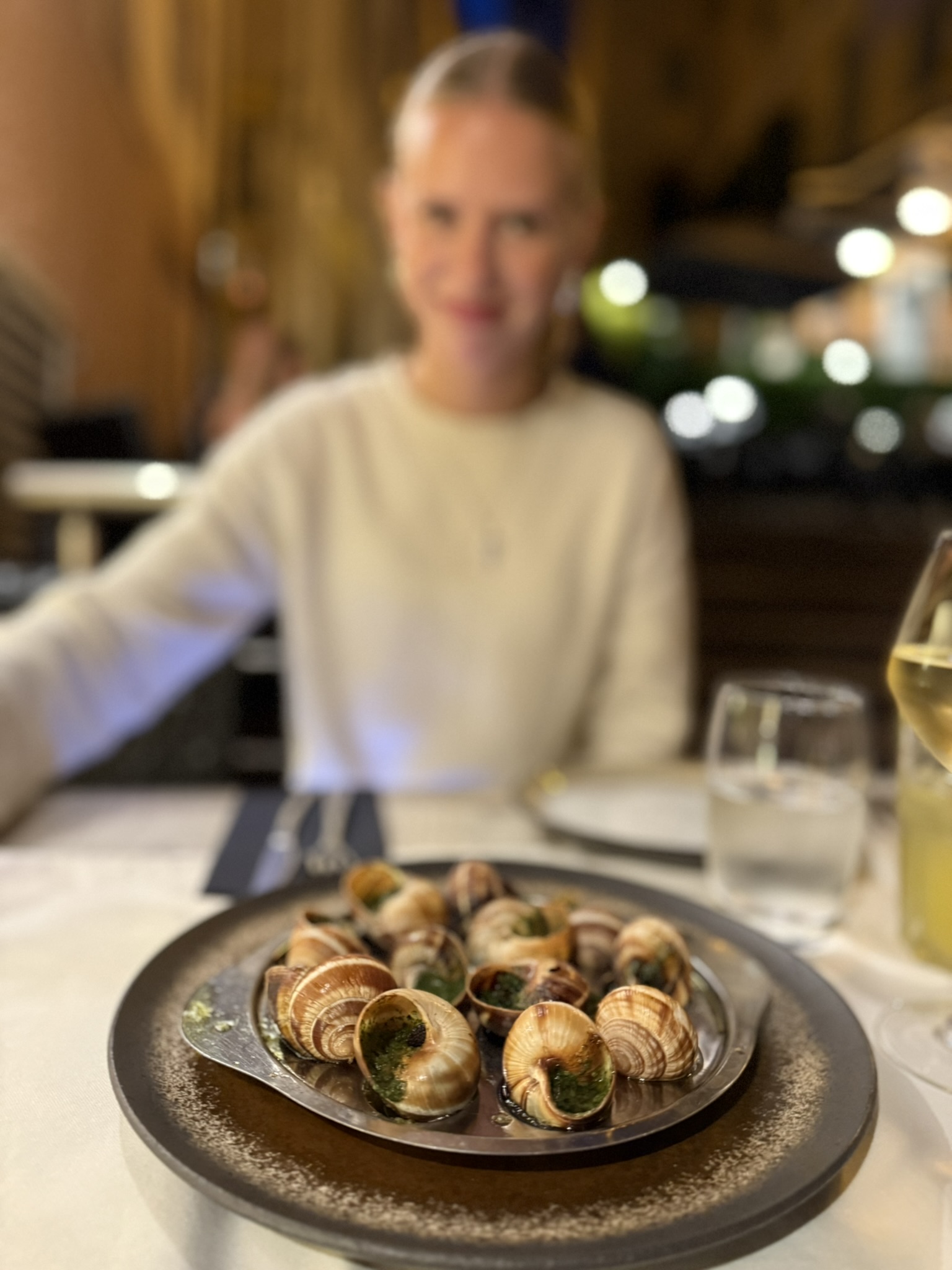 Lite läskigt första tuggan, men det var väldigt gott och vi åt upp varenda liten vitlöksgratinerad snigel.